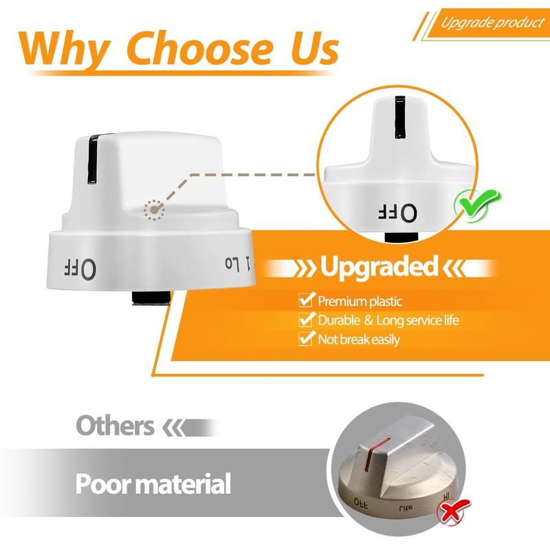 • 【EASY FOR INSTALLATION】The ge range stove knob is easy to install and use, without any tools, you can easily install the burner knobs and quickly get your stove burner back to work, saving your time and money.