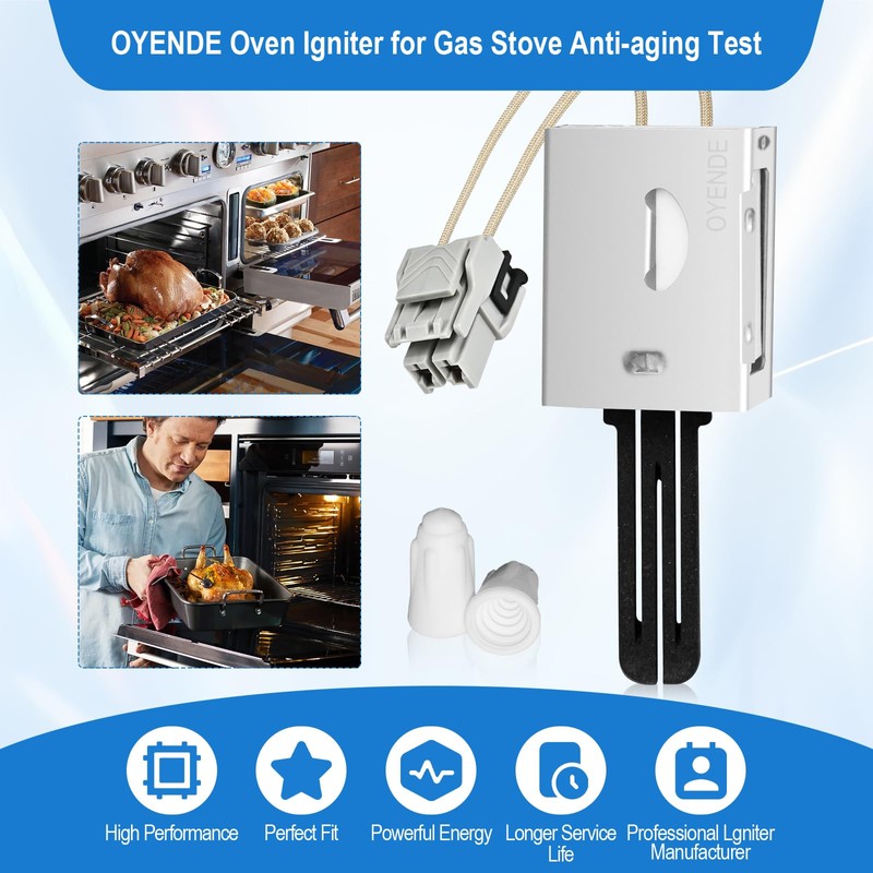 - Important Note: WB13X25633 oven igniter replacement, for Ge oven igniter has passed anti-aging tests, so don’t worry about any discoloration—it won’t affect performance! Ensures better heat resistance and a stronger power connection, helping you light your oven burner and adjust temperatures easily. oven igniter is designed to extend the life of your stove or oven. If you have questions,feel free to contact us, OYENDE is dedicated to providing excellent customer service!