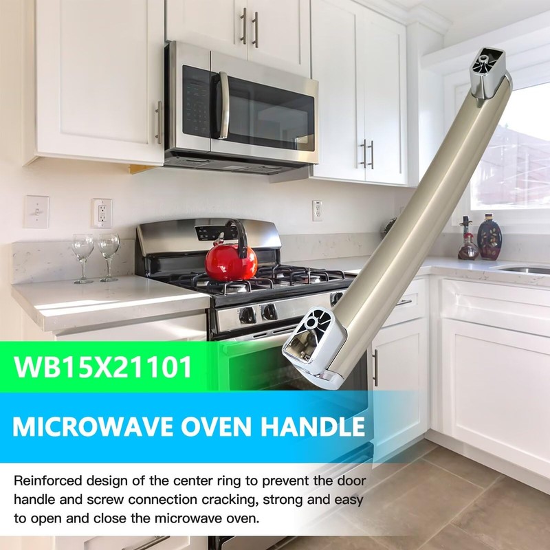 - Package Includes: 1 x WB15X21101 Microwave door Handle Replacement, 2 x Microwave Screws as pictured; If you have any problems, please contact us. We will do our best to service you.Thank you and have a good day