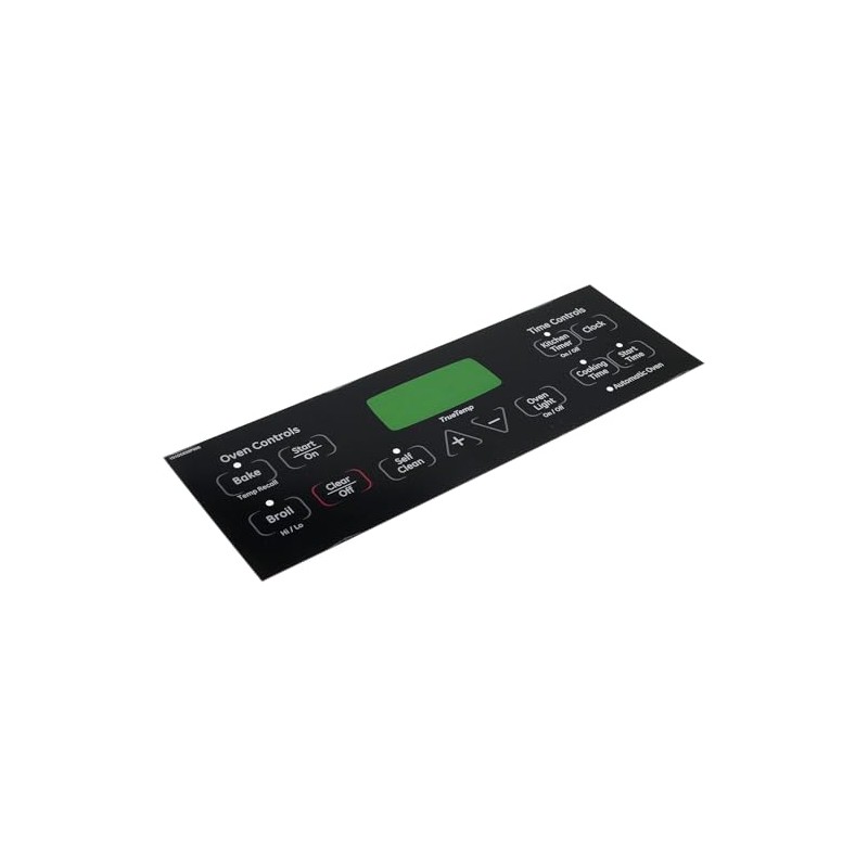 Upgrade your oven with this faceplate graphics overlay range control panel touchpad from Designed for seamless integration, this touchpad offers intuitive controls for your oven's essential functions. Adjust temperatures, set timers, and activate self-cleaning mode with ease. The sleek black surface with clear labeling ensures user-friendly operation. Crafted for durability, this touchpad promises long-lasting performance in your kitchen. Elevate your cooking experience with this versatile and reliable control panel.