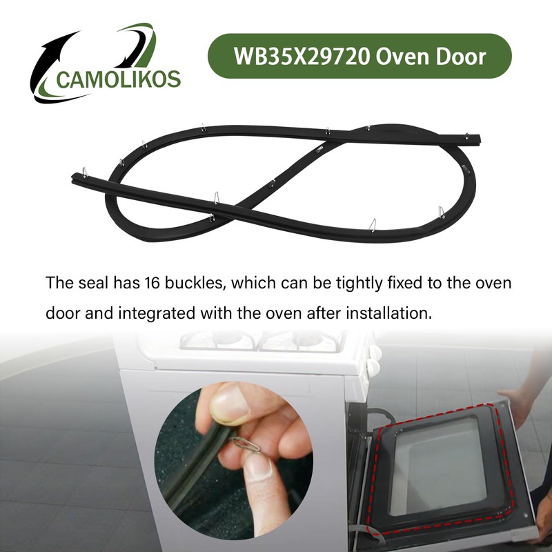 - The WB35X29720 Range Oven Door Gasket Seal is black in color, which can better integrate with the oven. The seal has 16 buckles that can be tightly fixed to the oven door, making your oven look new when installed.