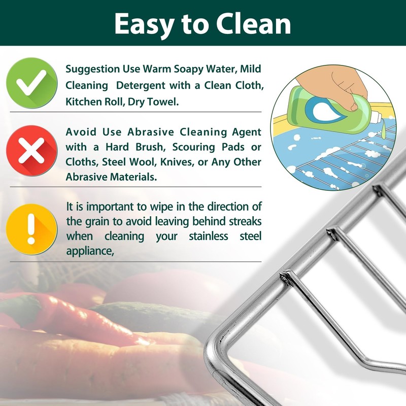 - Material of GE Roaster Oven Rack: The premium 304 stainless steel ge oven rack wb48t10095 construction is a standout feature, 304 stainless steel range oven not only stronger and more robust than others, but it also resists deformation and safeguards against rusting, ensuring the ge oven racks will last for years to come and provide a seamless cooking experience