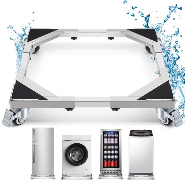WBD Upgraded Stainless Steel Washing Machine Dolly Cart, 700lbs Furniture Dollys with lockble Wheels, Adjustable Mobile Roller Fridge Stand Base for Washing Machine, Dryer, Refrigerator, Pedestal