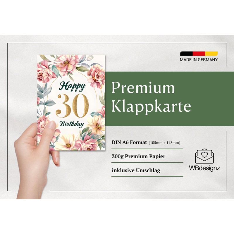 WBdesignz Birthday Card with Envelope – Elegant Birthday Card 30 Years "Happy Birthday Flower Gold 30th Birthday (A6)