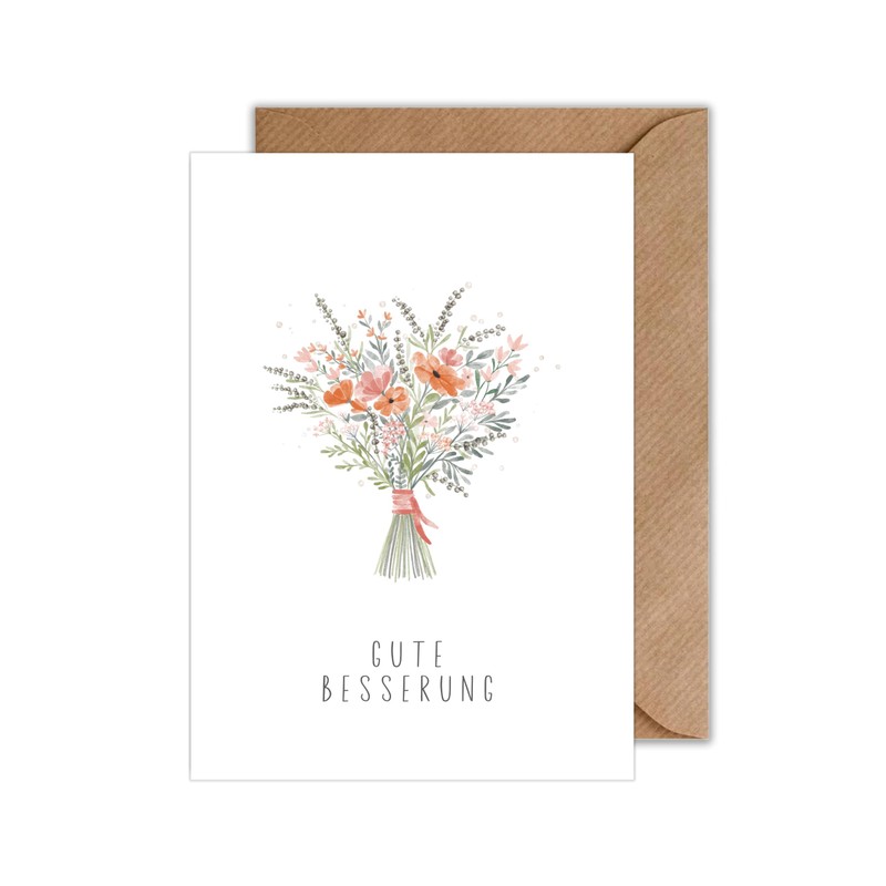 WBdesignz Get Well Soon Card with Flower Bouquet Poppy Pastel - Get Well Card (DIN A6)