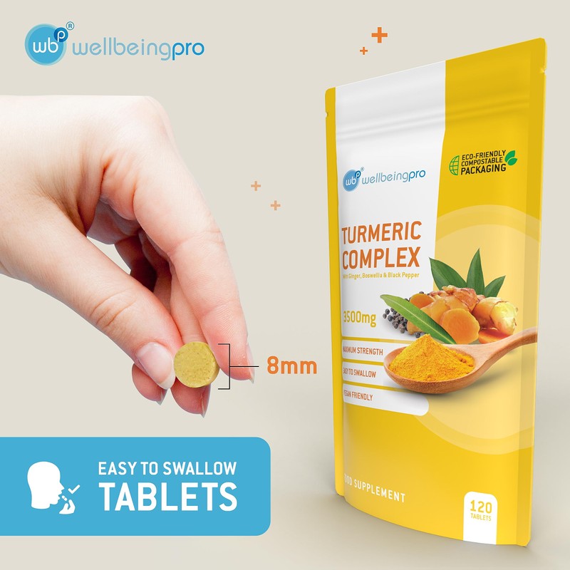 WBP Turmeric Complex 3500mg Maximum Strength (Up to 4 Months Supply) – with 95% Curcumin, Ginger, Boswellia Serrata & Black Pepper – Eco & Letterbox-Friendly Compostable Packaging – 120 Tablets