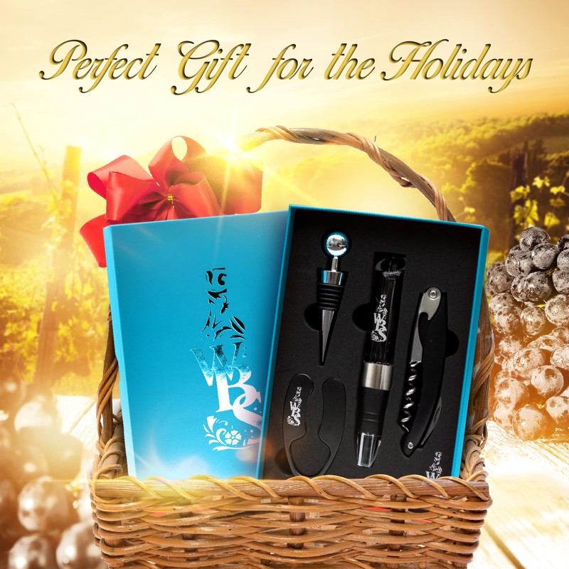 OPEN, SERVE & PRESERVE - The WBS 4 Piece Gift Set has everything you need to open, serve and preserve your wine in style. The pieces come in an alluring box and include all the essentials; a foil cutter and waiter’s corkscrew bottle opener to open your wine, an aerator pourer to serve your wine, and a wine stopper to help preserve your wine.