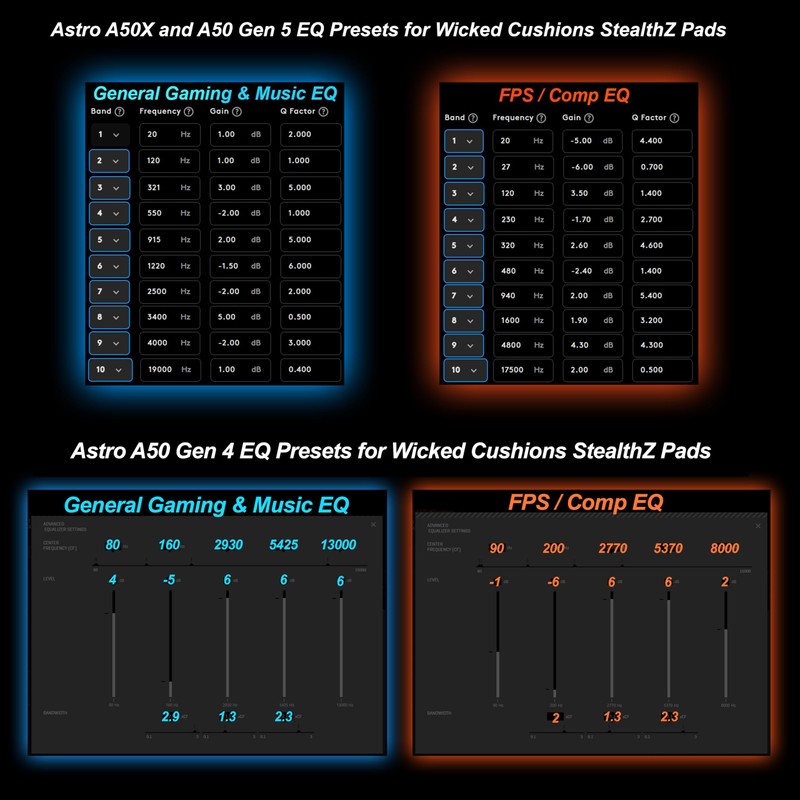 WC StealthZ A50 - FPS Oriented Earpads for Astro A50 Gen 4, Gen 5 & A50X by GadgetryTech & Wicked Cushions | Enhanced Sound Precision & Comfort for First-Person Shooter Games | Black