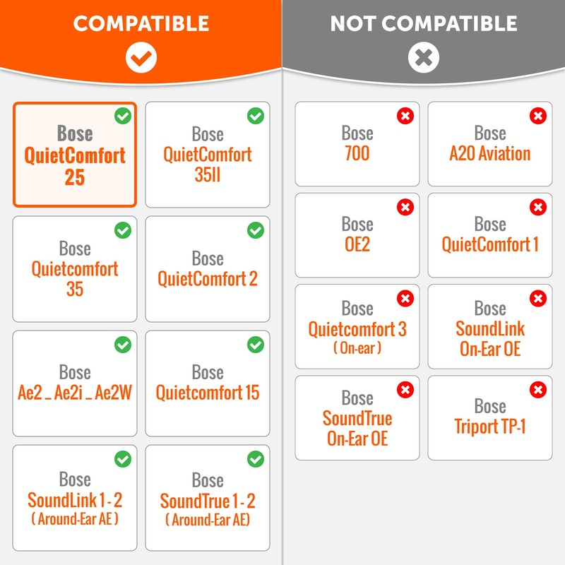 - Fits Like A Glove: These ear pads, made by Wicked Cushions, fit the following models of Bose Headphones perfectly: QuietComfort 25 / Quiet Comfort 2 / Qc15 / Ae2 / Ae2i / Ae2w / SoundTrue / SoundLink