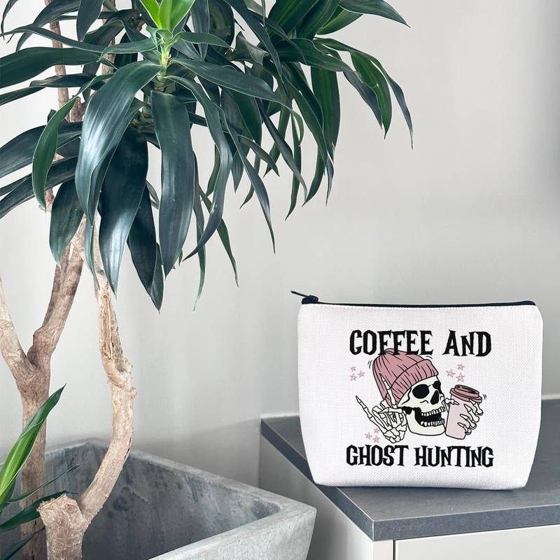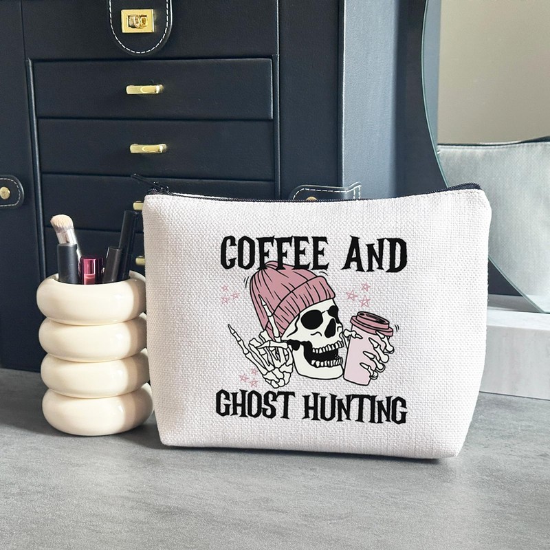 WCGXKO Coffee and Ghost Hunting Makeup Bag Paranormal Ghosts Gift(Hunting Bag CA)