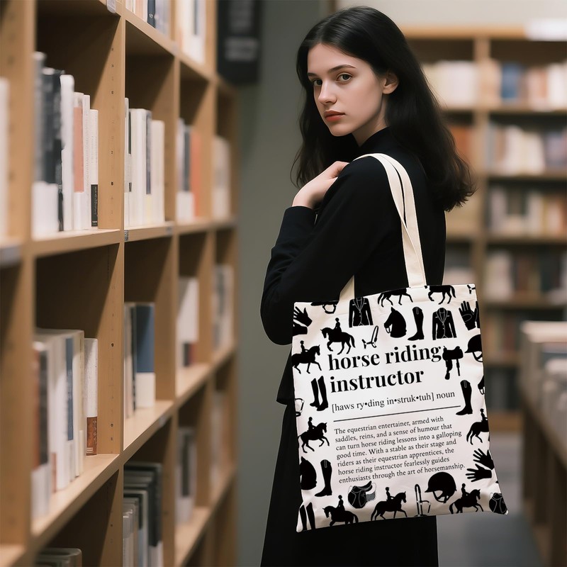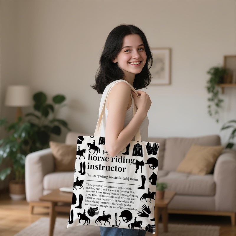 WCGXKO Horse Riding Instructor Tote Bag Funny Definition Job Work Gift for Horse Lover (Horse Riding Tote)