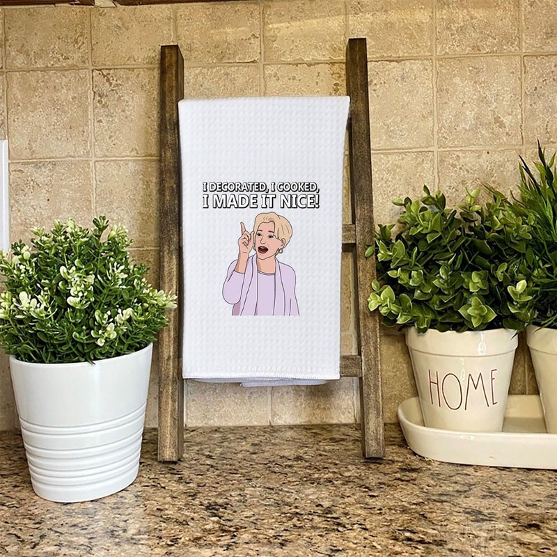 WCGXKO Inspired Gift I Decorated I Cooked I Made It Nice Flour Sack Kitchen Towel Dish Cloth Housewarmin Gift (I Decorated Towel)