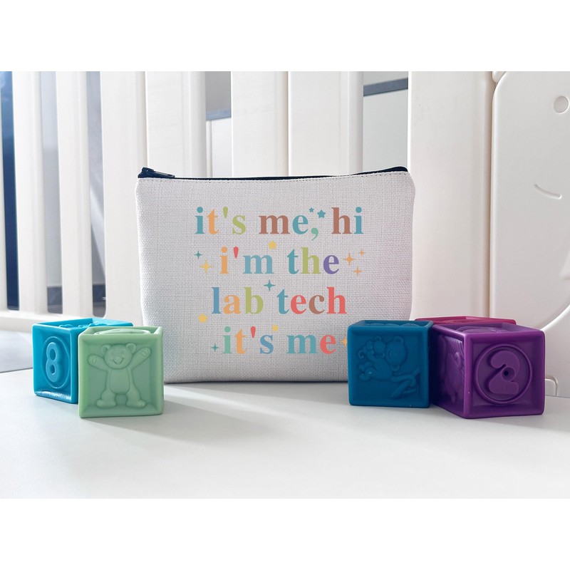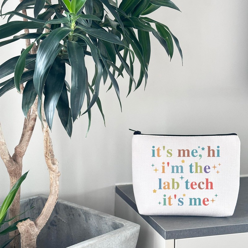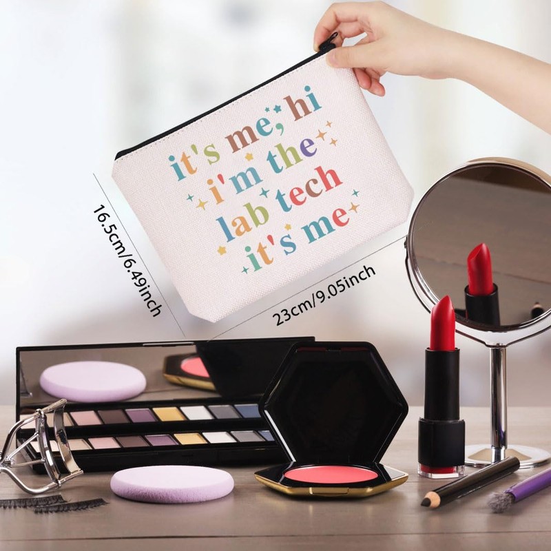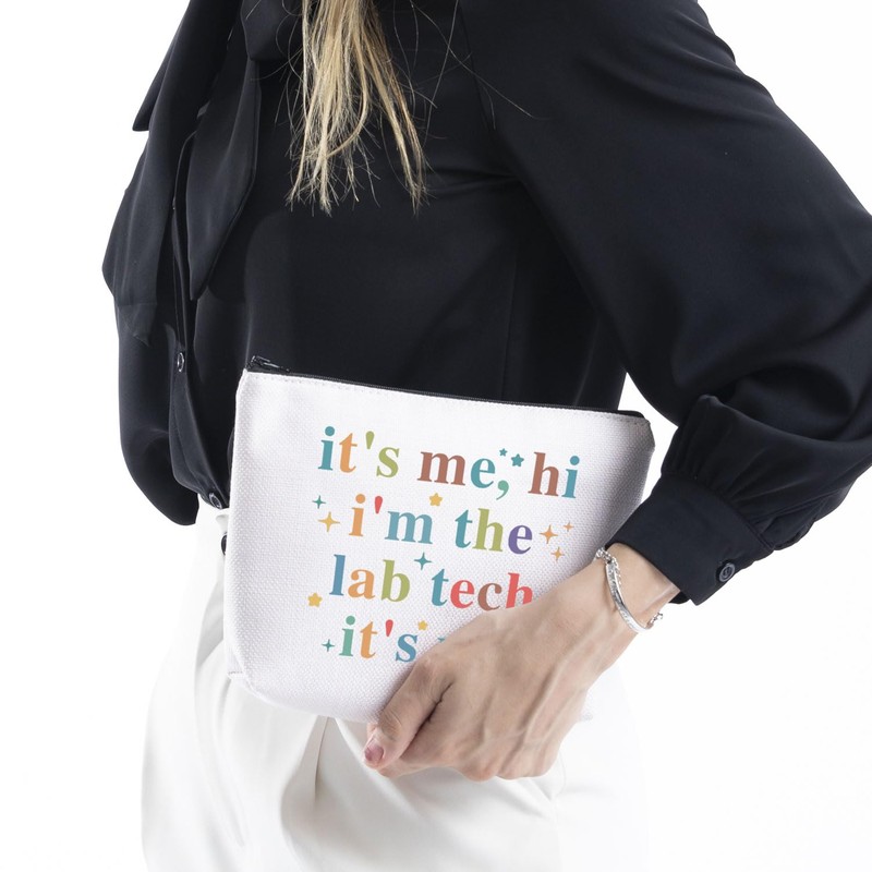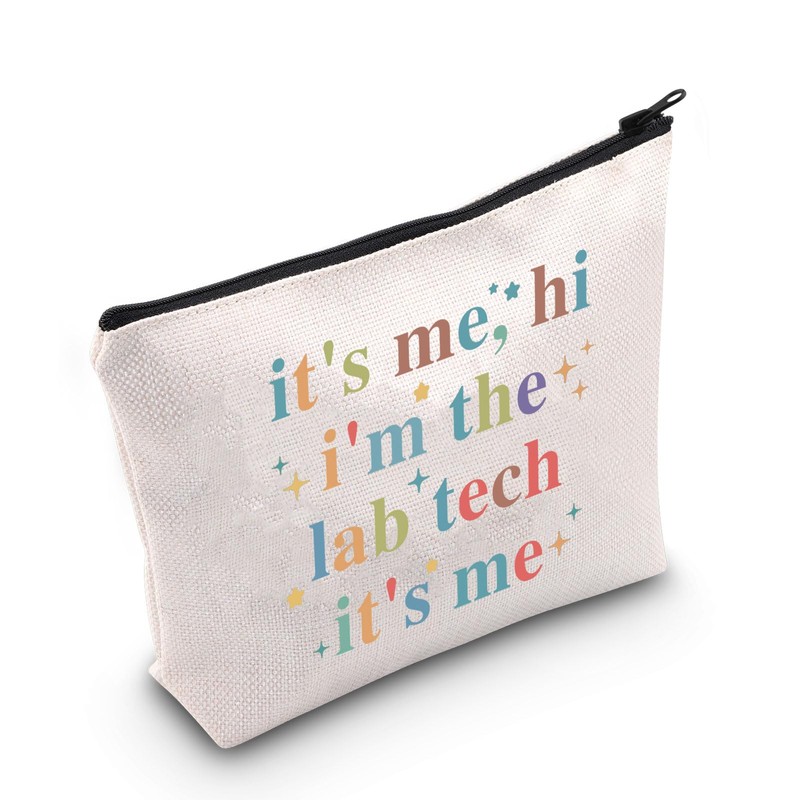 WCGXKO Lab Tech Gift It's Me Hi I’m The Lab Tech It’s Me Zipper Pouch Makeup Bag (B-Hi Lab Tech), beige