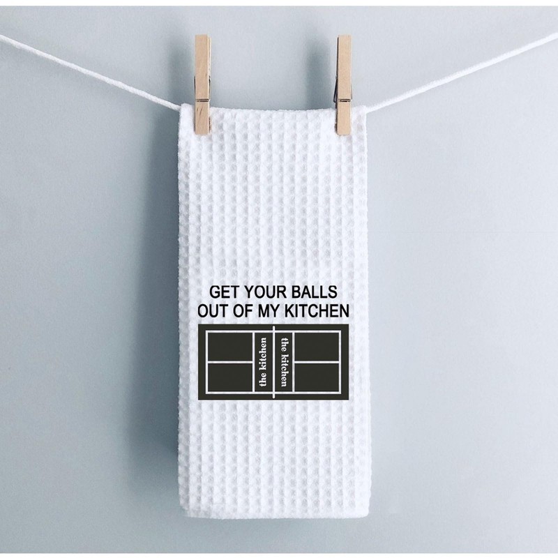 WCGXKO Pickleball Gift Get Your Balls Out of My Pickleball KitchenTowel Dish Cloth Tea Towe (GET Your Towel)