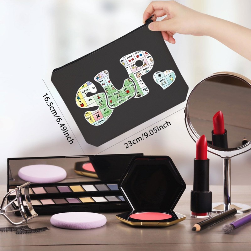 WCGXKO SLP Puzzle Heart Speech Therapy Puzzle Piece Inspirational Zipper Pouch Makeup Bag (B-SLP Puzzle CA)