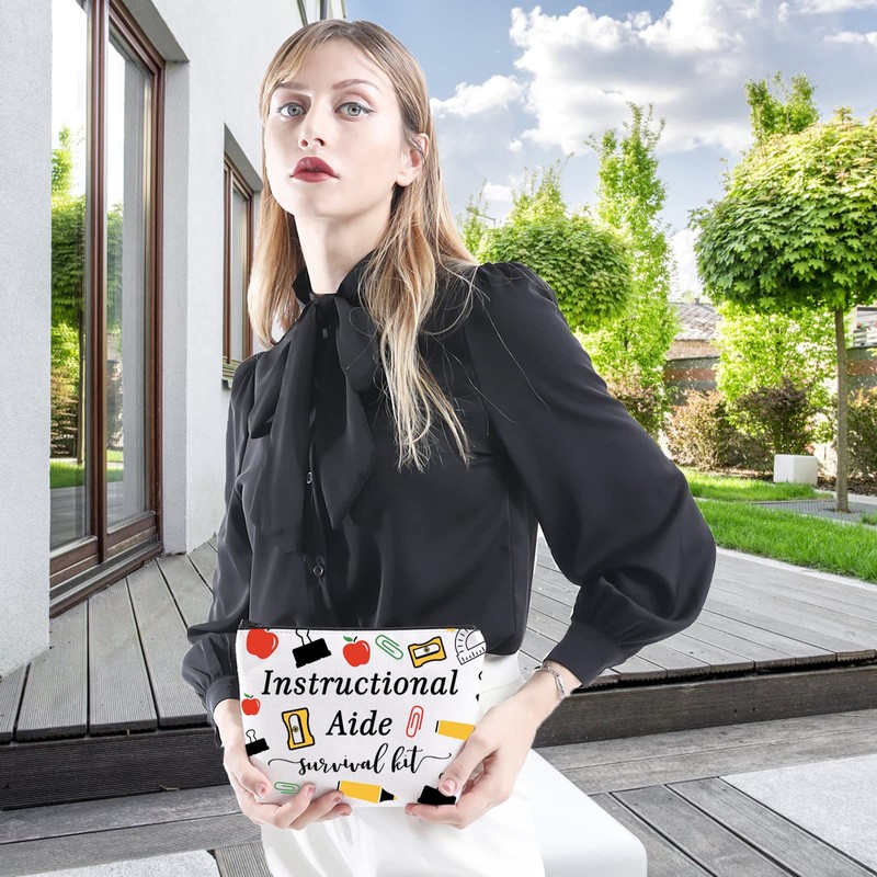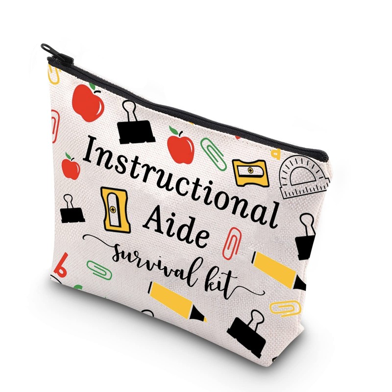 WCGXKO Teaching Aid Gift Instructional Aide Survival kit Teacher Thank You Zipper Pouch Makeup Bag (Instructional CA)
