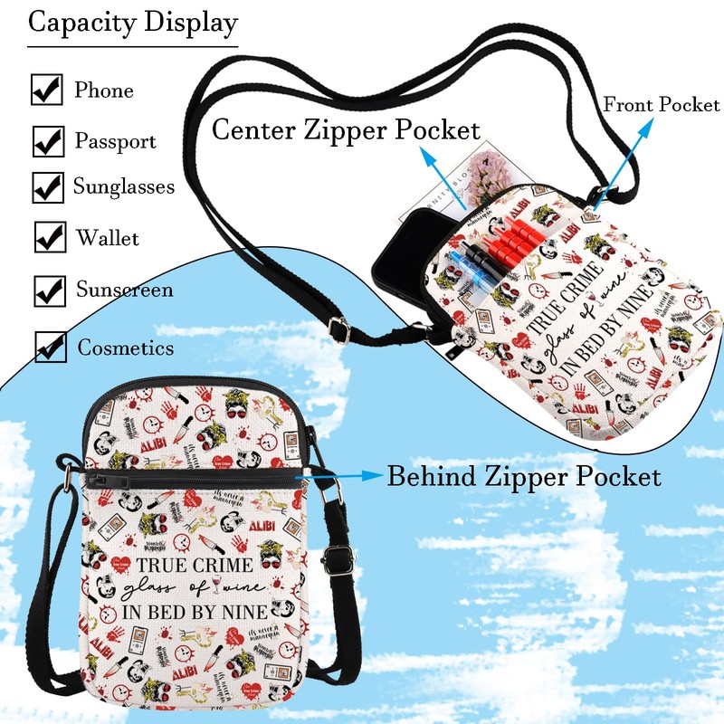 WCGXKO True Crime Gift Wine Lover Gift True Crime Glass Of Wine In Bed By Nine Zipper Messenger Bag (TRUE CRIME CR)
