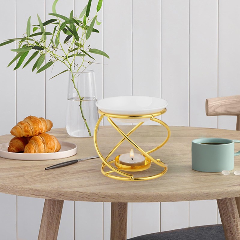 WD&CD Metal Wax Melt Essential Oil Burner Gold, Ceramic Candles Holders Oil Burners Aroma Burners Aromatherapy Holder Candle Scented Diffuser Home Bedroom Decor