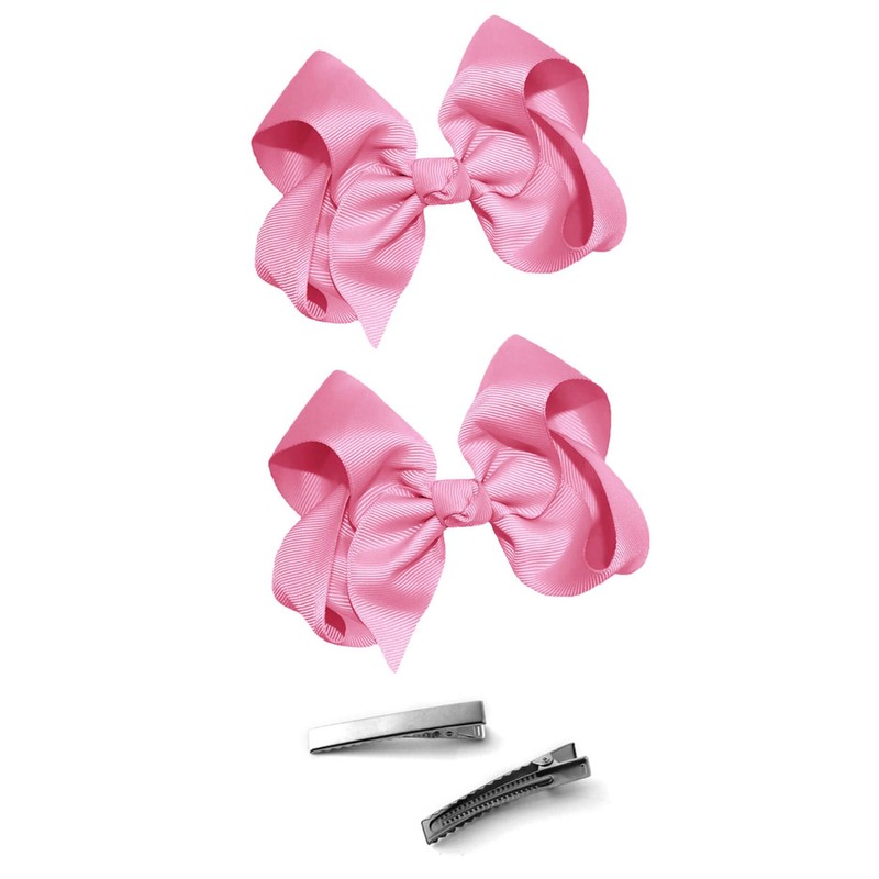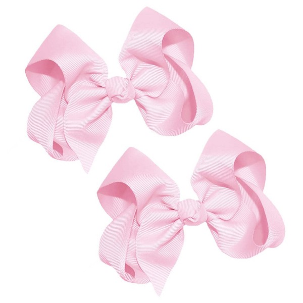 WD2U Girls Set of Two 4" Solid Grosgrain Pigtail Hair Bows Alligator Clips Light Pink