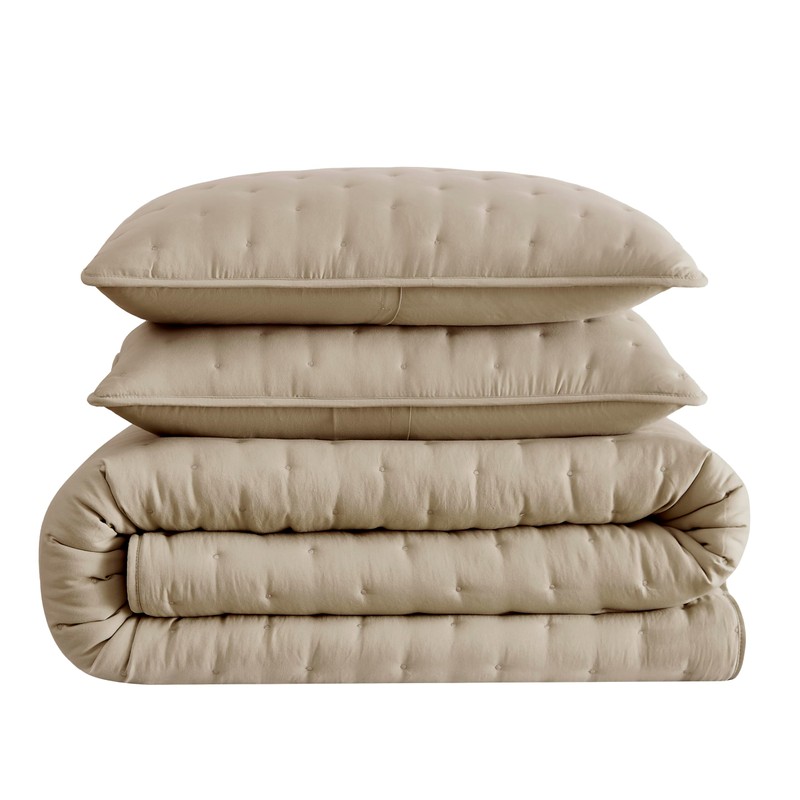 - Tailored Elegance - This bedding set combines softness with a refined design, elevating any bedroom’s decor. The quilt’s sleek lines and cozy texture add a touch of sophistication, making it a versatile addition to both modern and traditional spaces.