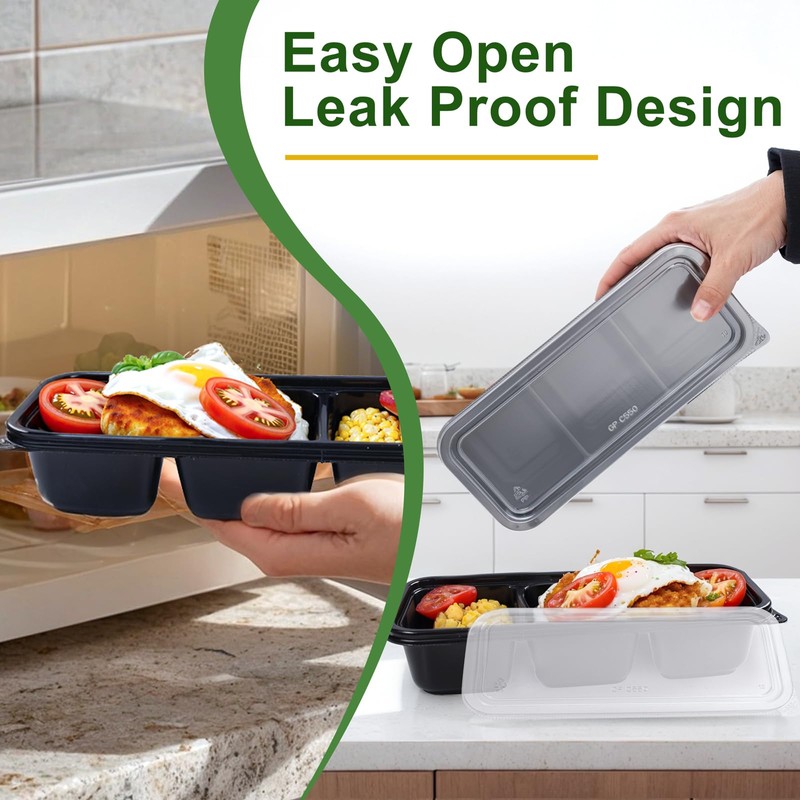 WDF 50 Pack Small Meal Prep Containers 3 Compartments with Lids - Disposable Snack Box Container - Disposable Bento Boxes - Reusable Travel Lunch Boxes for Office/Picnic/Microwave Safe