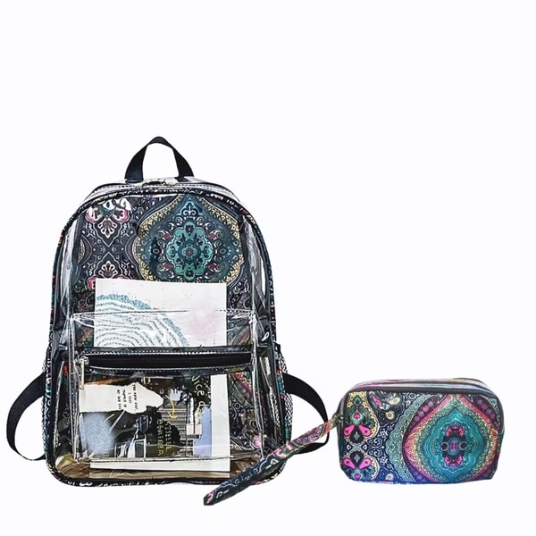 Wdfpideg 2-Pack Clear PVC Backpacks with Quilted Pockets Perfect for Sports, Travel, and College | Stylish Totem Print