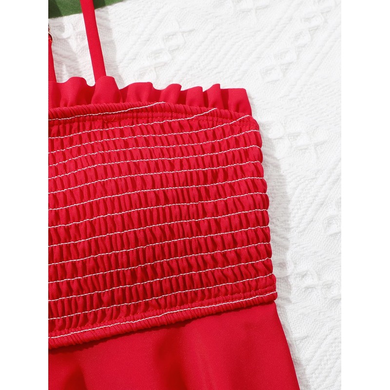 WDIRARA Girl's 2 Piece Set Watermelon Print Swimwear Smocked Ruffle Hem Bikin...