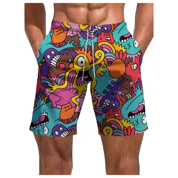 - Feature: Swim shorts for men, funny graphic print, all over print, drawstring, elastic waist, quick-dry, with pockets