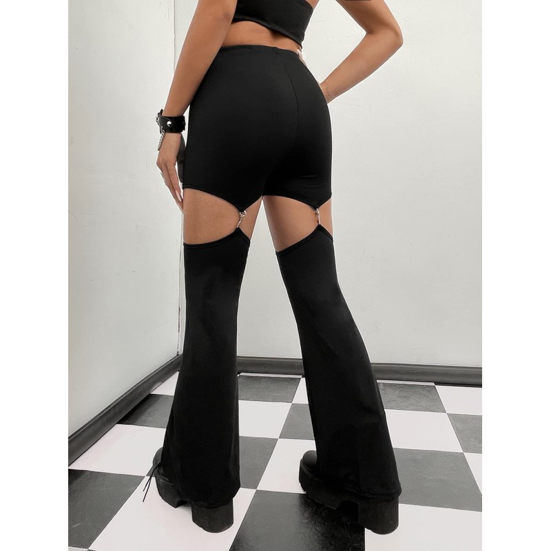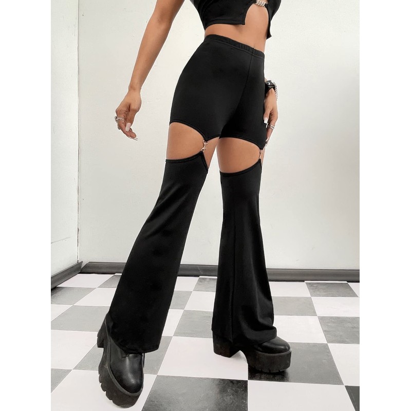 - Features: cut out, high waisted, flare leg, elastic waist, removable