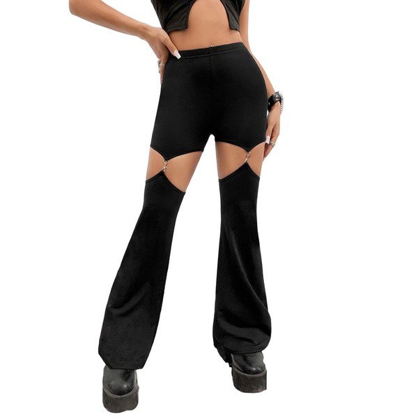 WDIRARA Women's Cut Out High Waisted Flare Elastic Waist Party Leggings Night Out Pants Solid Black XXL