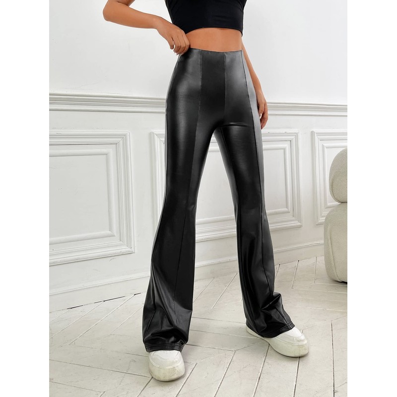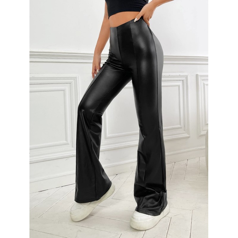 • Features: pu leather, bell bottom, solid color, casual pants