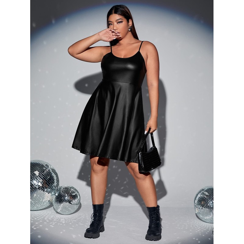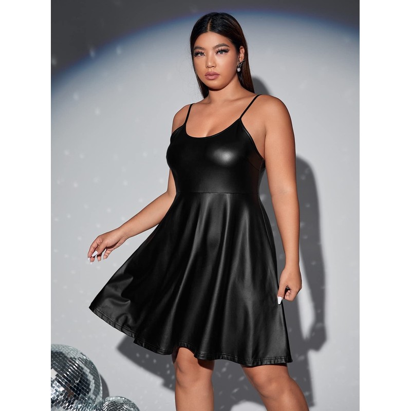 - Features: plus size, pu leather, sleeveless, club cami dress, plus size black leather dress for women, a line leather plus size dress