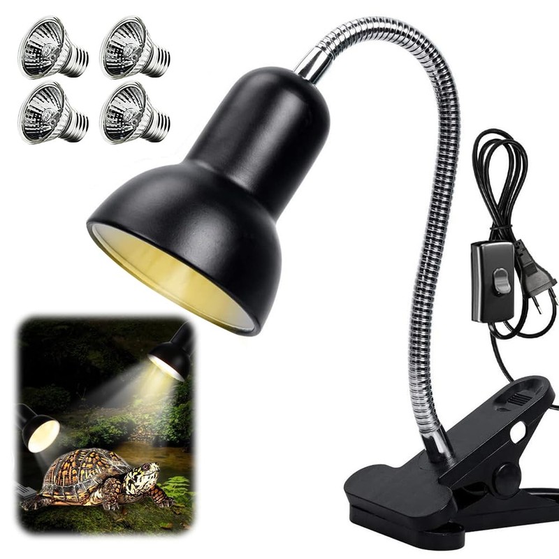 WDKXCN Heat Lamp Turtles, Reptile Terrarium Lamp with 4 UVA UVB Basking Spot Bulbs, Heat Lamp Terrarium with Clip E27, Reptile Heat Lamp, Aquarium Animals, Accessories for Lizards, Snan