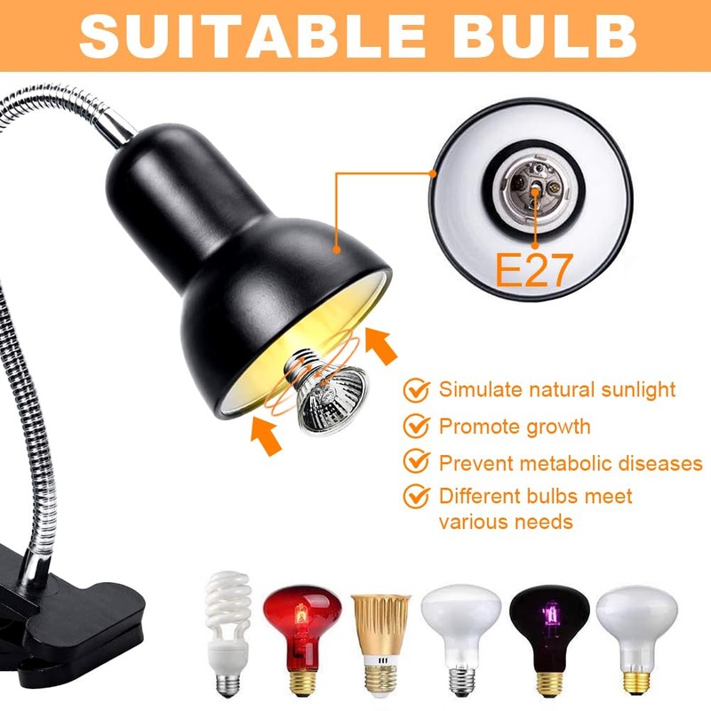 4. The reptile terrarium lamp only compatible with bulbs with E27 screw base.