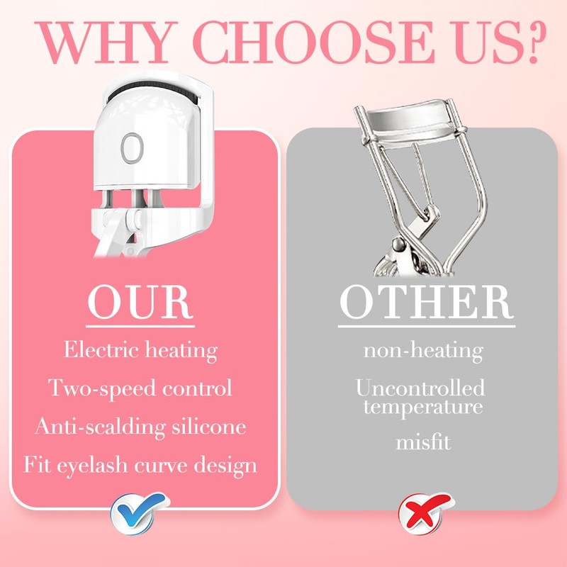 - 10 seconds preheating: the electric heated eyelash curler is made of fast heating material and can be preheated in 10 seconds. You will get curly eyelashes in seconds. The electric heated eyelash curler is suitable for all eyelashes and has a better curling effect than the manual version