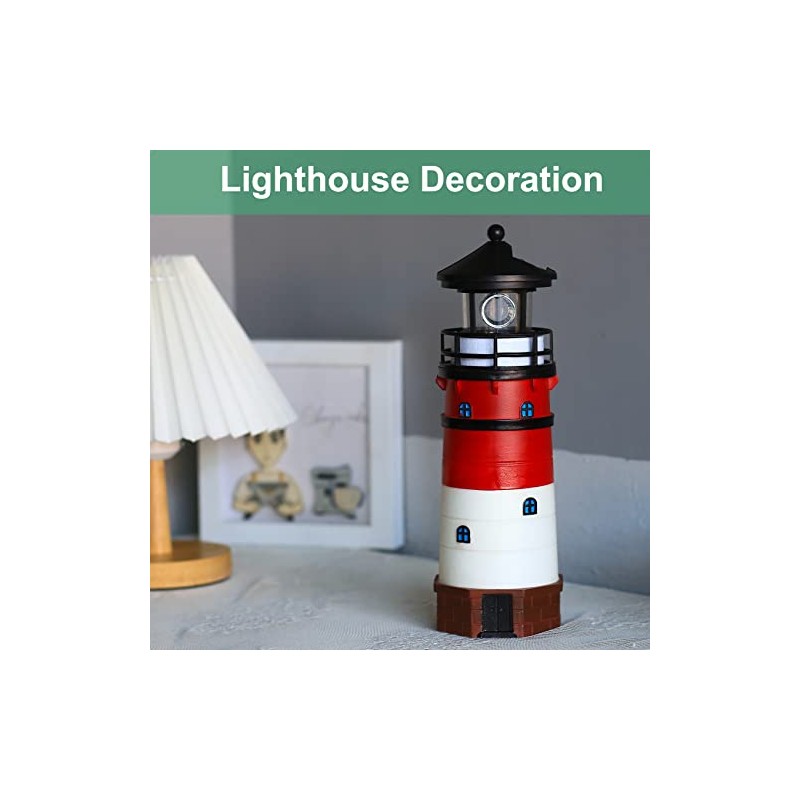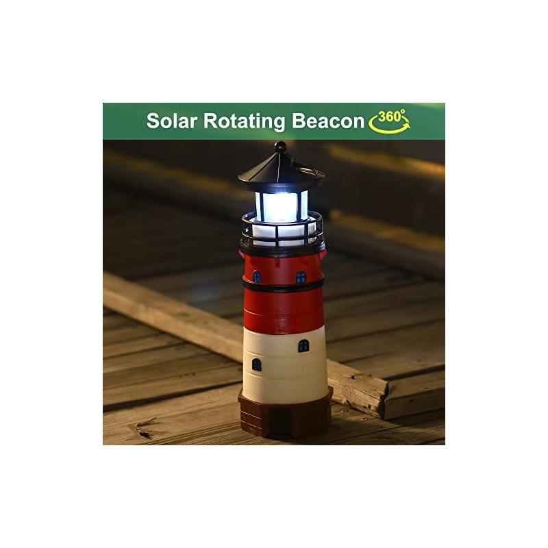 WDLFCGC Solar Powered Lighthouse - 12" Tall Solar Lighthouse with Rotating Beacon, 360 Degree Rotating Lighthouse Decoration, Best Lighthouse Gifts for Children(Round Black Top)