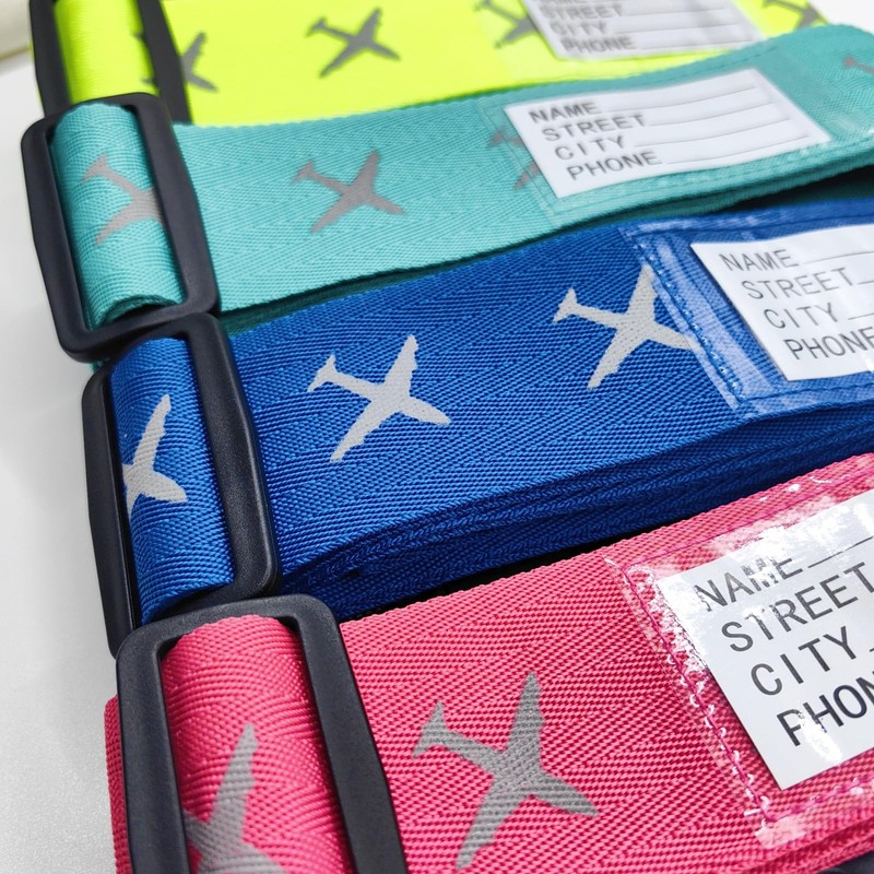 - (Woven with Reflective Material) Available in 4 different colors and a beautiful pattern that makes it stand out from the crowd. Quickly identify your luggage and save time and effort and make it easy to get your luggage. Airplane-shaped reflective tape allows you to clearly see your luggage at night