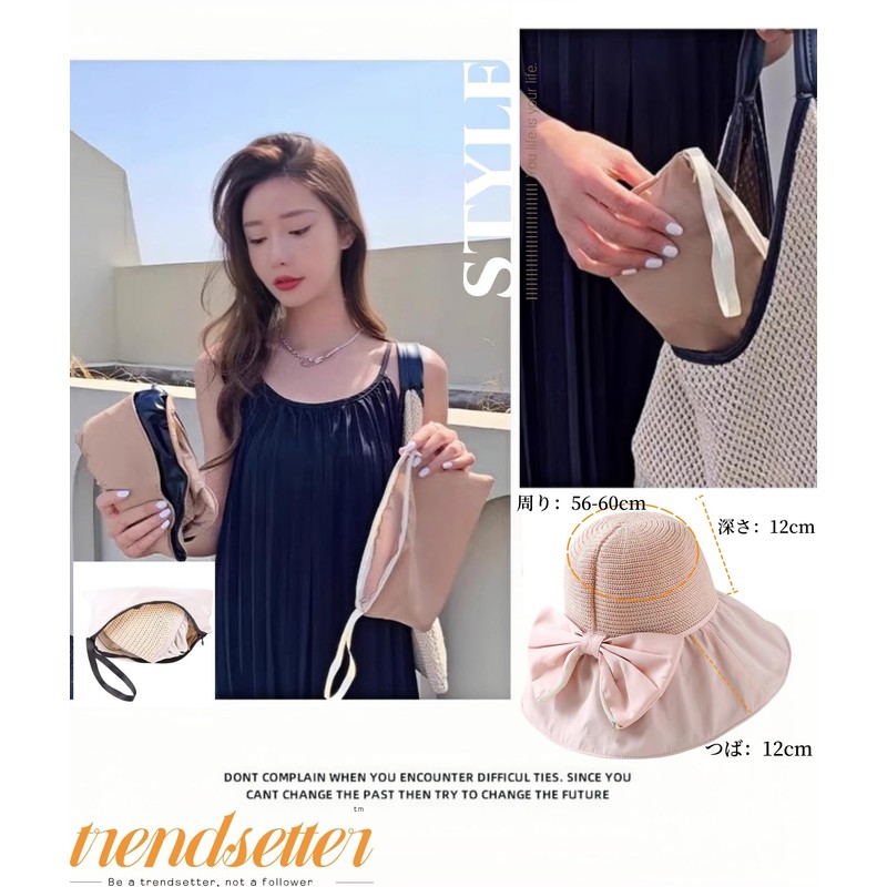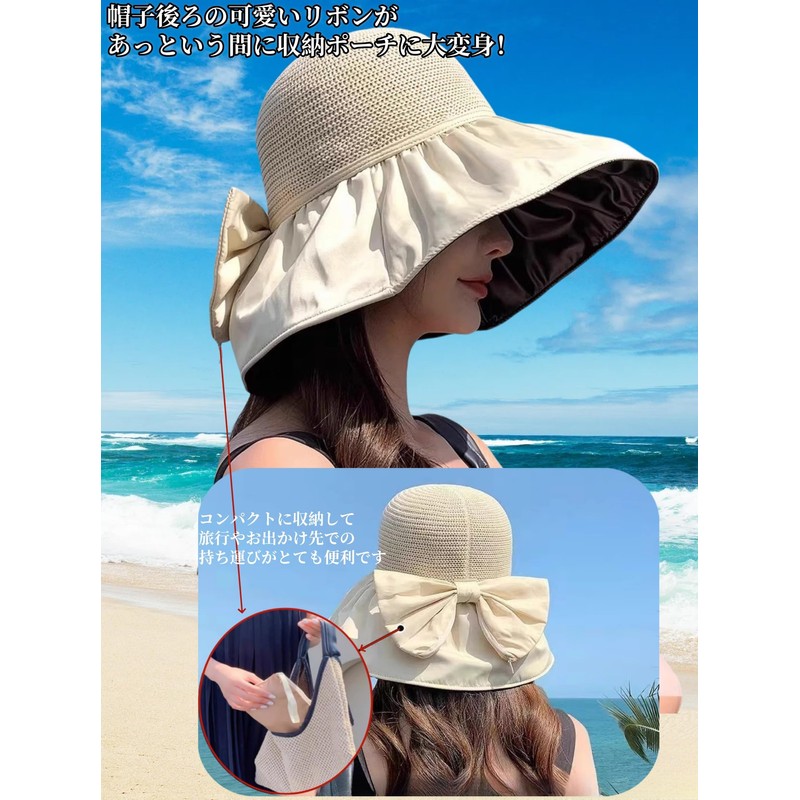 • 【リボンが収納袋にとしても】この帽子の最大の魅力!可愛いリボンがあっという間に収納ポーチに大変身!後ろの大きなリボンは付けている時はとっても可愛いアクセント! 実は取り外せて広げてから、専用の収納ポーチに早変わり!帽子を折り畳めてポーチに入れれば、かばんの中でコンパクトに収納できる、旅行やお出かけ先での持ち運びがとっても便利です!