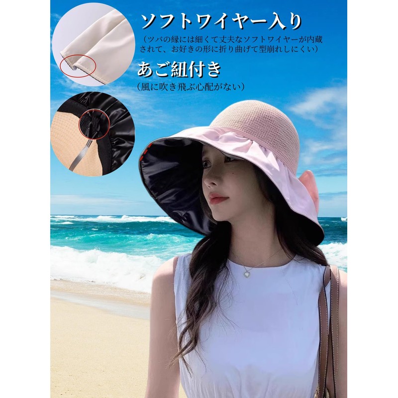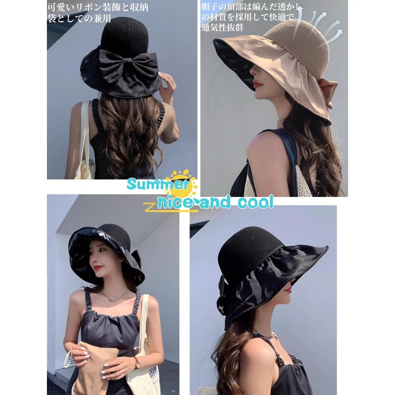 [Wdlife] UVカット帽子レディース 日焼け防止つば広ハット【紫外線対策・夏に向けの黒い遮光コーティングの設計】 折り畳み 収納袋付き リボン サイ...