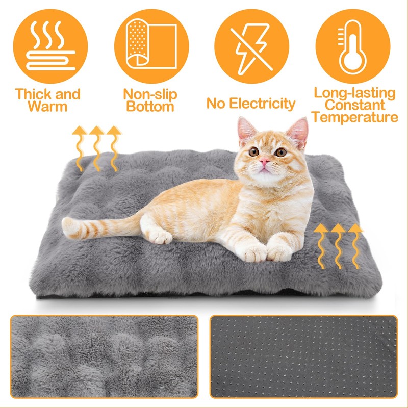- PERFECT SIZE This self heating pet mat is available in two sizes:23.6 x 17.7 inches for kittens and small cats, as well as 35.4 x 23.6 inches for most large cats and small dogs. Available in beige and grey to meet your pet's individual taste.
