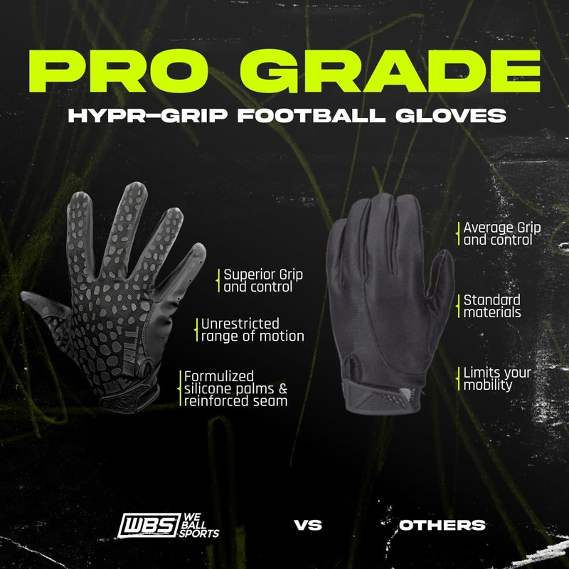 - Enhanced Grip & Control: Experience superior grip and control all-season long with our Hypr-Grip Football Gloves.