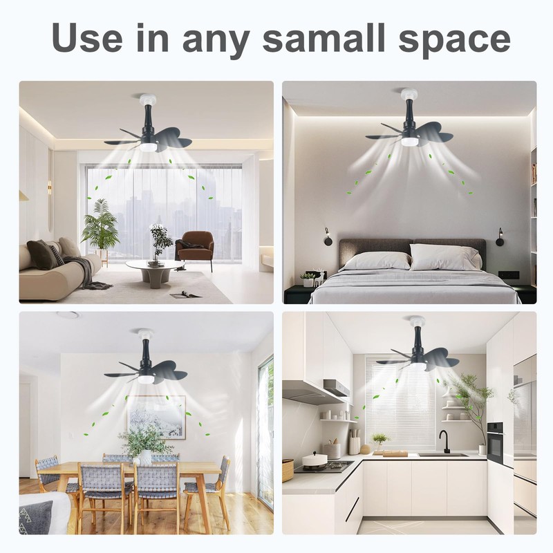 - Ceiling Fan with LED Light: This socket fan combines a ceiling fan with a super bright LED bulb, it can not only illuminate space but also circulate air around your room. No need to spending for two different products.