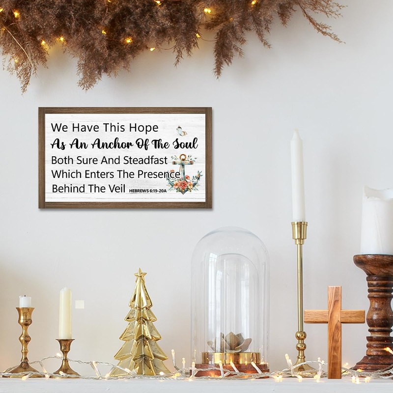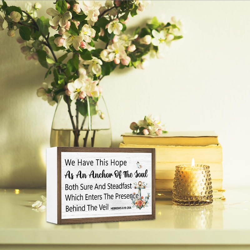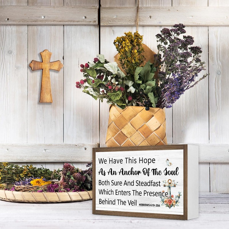We Have This Hope Hebrews 6:19-20A Bible Verse Wooden Box Sign Desk Decor,Rus...
