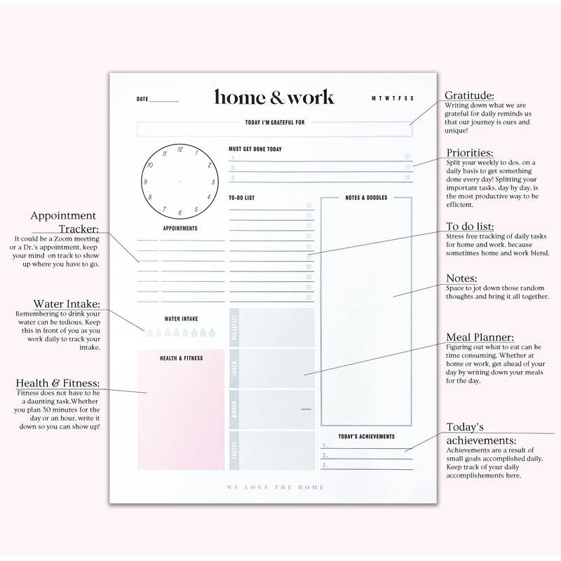 We Love The Home Daily To Do List, Personal and Work Notepad, Cleaning Lists, Home Office Organizing, Water Intake and Priorities Tracker, Work From Home Reminders, Goals, 8.5"x11.5" (50 Sheets)
