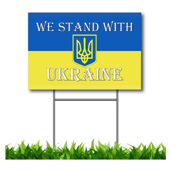 We Stand With Ukraine Double sided Corrugated Coroplast Lawn Sign Home 12"x18" with Free Metal Stake Made in USA