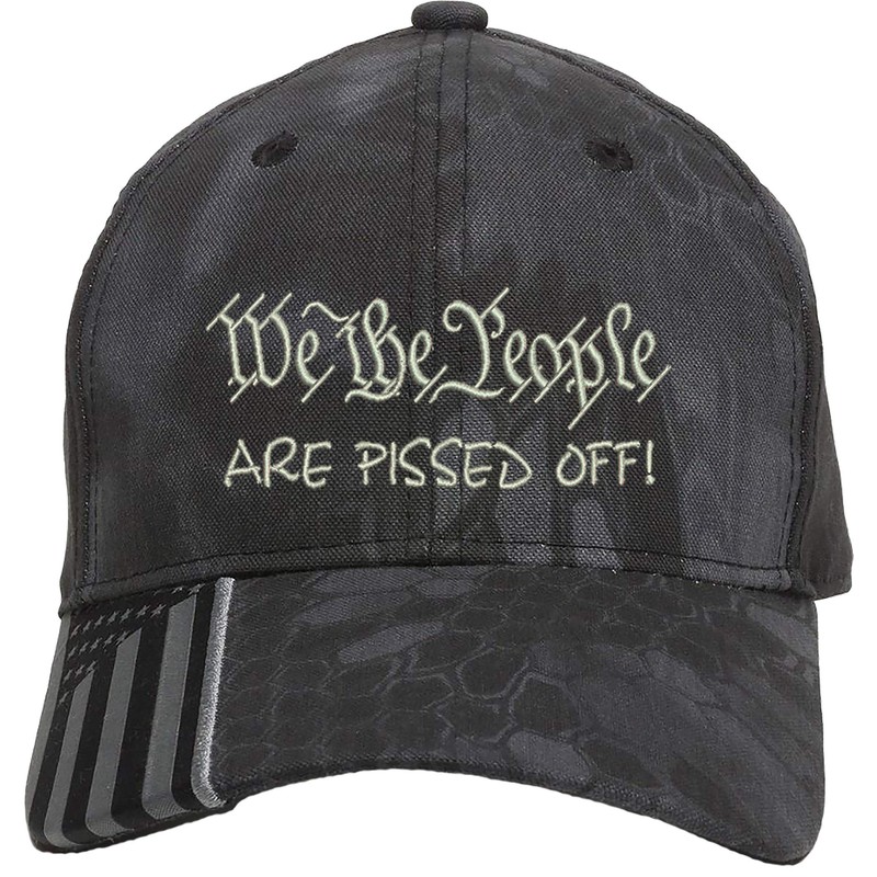 We The People are Pissed Off Embroidered Structured Adjustable One Size Fits All US Flag on Bill Hat (Kryptek Silver)