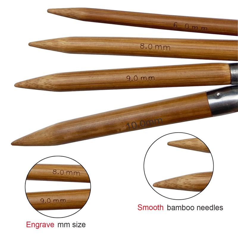 - Our knitting needles are made of bamboo which has been carbonized for a smooth finish to avoid any rough edges.They are smoother and lighter which is great for those that suffer with joint pain as they require less tension and come with a handy thumb rest.(Patent Pending)