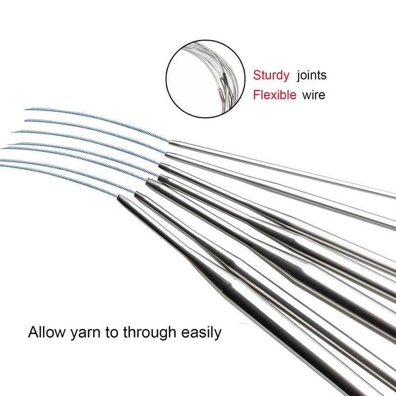 - Each item is sturdy and durable,precisely machined with satin finish with perfectly tapered tips,steel cable allowing your yarn to easily slide end-to-end.It can so much easier to get started on all your knitting projects.