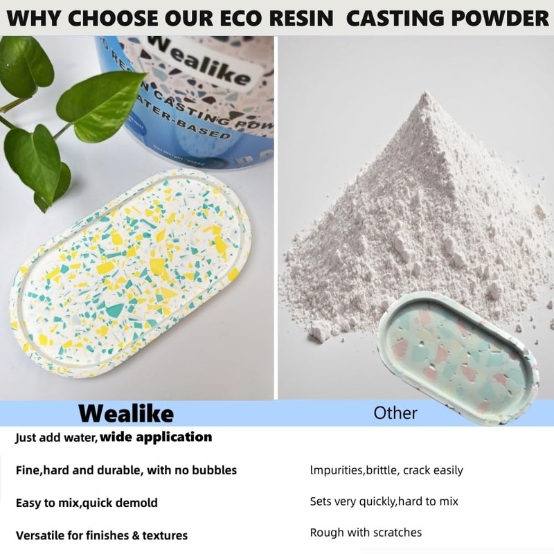 Wealike Eco Resin Casting Powder 6.6lbs/3000G,Water-Based Ceramic Resin Plaster with 6PCS Pigments,20-30 Minutes Demold.Easy Mix for Home Decor &DIY Art