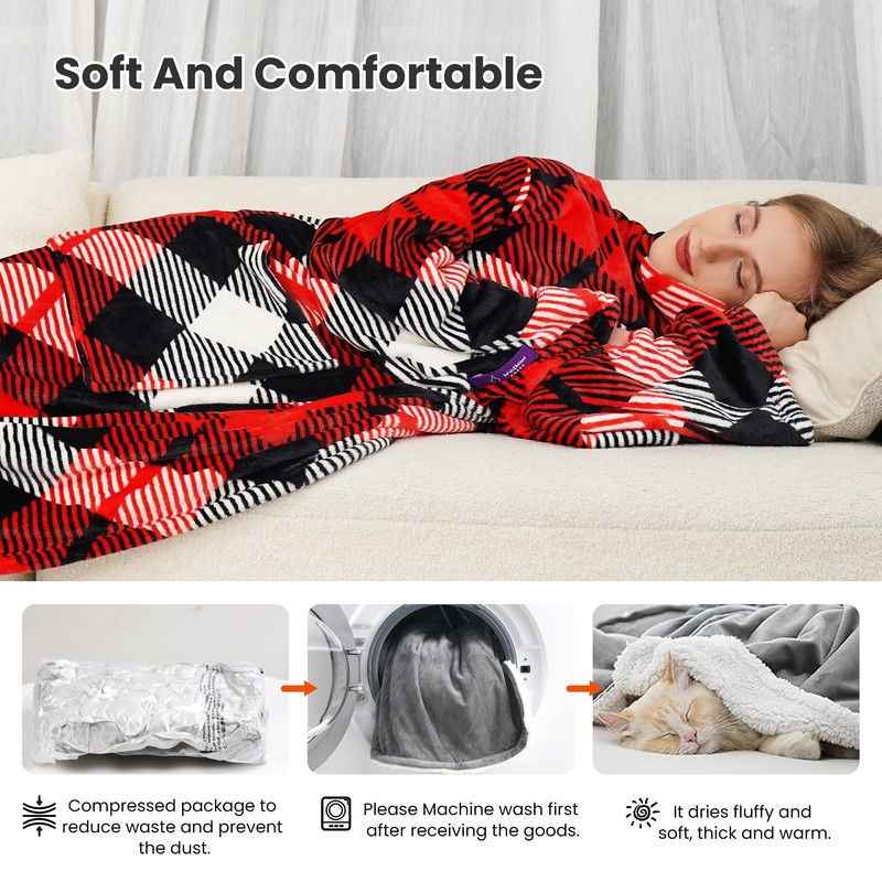 - COMFORT LOUNGING TIME: Enjoy your private relaxing time after work or during holidays on the sofa or bed without any bothering, maximizing warmth and comfort with our soft wearable blanket.